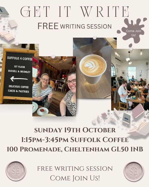 Our Writing Session is hosted by experienced editors from Scott Editorial at the lovely Suffolk Coffee (on The Prom, above Russell & Bromley Shoes in Cheltenham), and there is no cost to book your place. However, we have been asked by the venue to ensure everyone purchases a drink. That way, we can keep hosting the event for free, and you'll be supporting a wonderful local business.